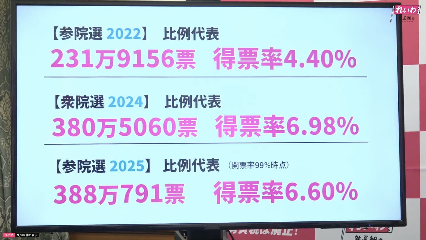 2005年夏の参院選。結果は、当初れいわが掲げた目標数「7議席」の半数にも満たない「3議席」で決着した。改選前の2議席から1議席増えたのだから勝利であるという見方もあるのだけれど、僕個人としては「負け」である。昨年10月の衆院選における比例票の得票数が380万票、今回の参院選での得票数が388万票。これをどう見るか。衆院選から10ヶ月の間、れいわは決して怠けていたわけではなく、当たり前のことだが本業の議員活動は全員精力的に行いつつ、その他の街宣・広報にもこれまで以上に力を入れてきた。しかし増加分はわずか8万票でしかない。ただ結党初期の固定支持数「200万票」から、これまでの期間で、2倍近くの「380万票」まで増やし、その数が減少しなかったということは、この380万人は、大胆にポジティブな見方をすれば、れいわの新たな固定支持者数となる可能性を秘めて…いる、のかも知れん。