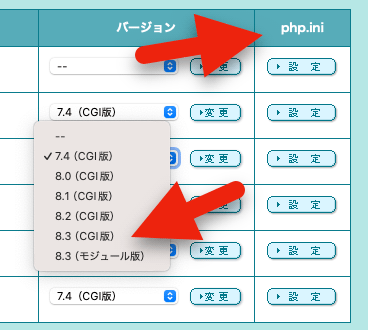 MAMP PROのPHP設定画面に選択ボタンがあった